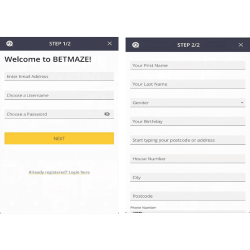 Sign Up Process at BetMaze