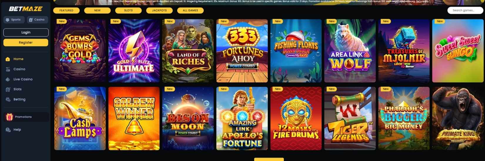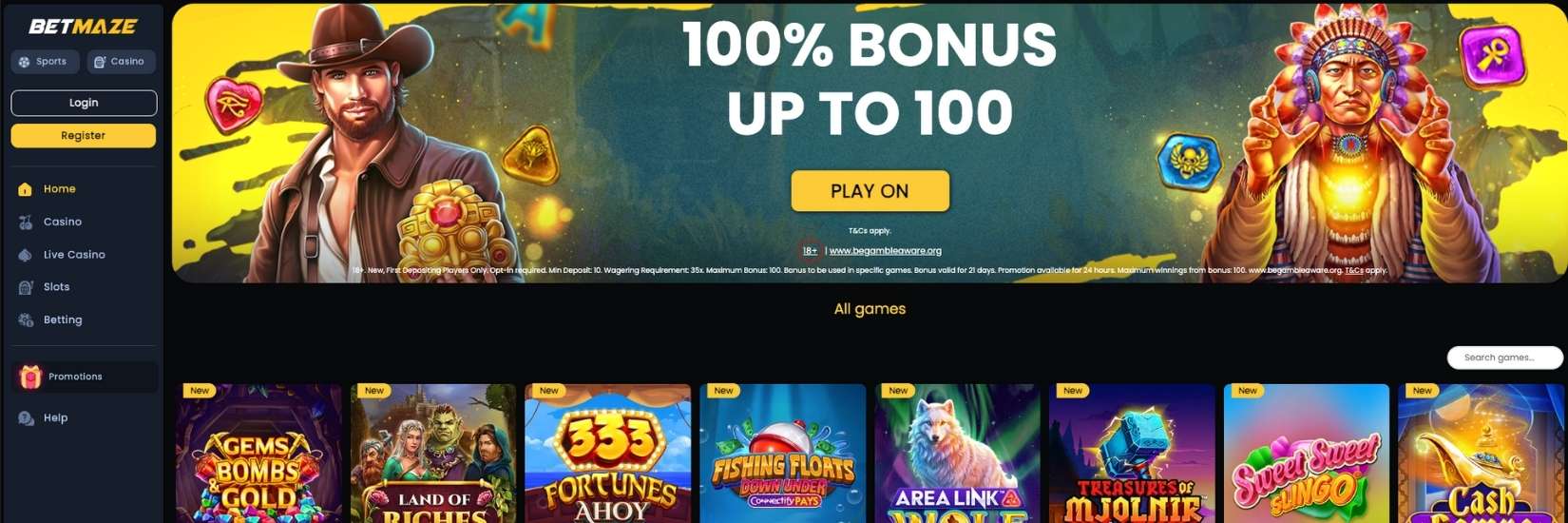 When you first land on BetMaze Casino, the site feels clean and easy to get around. The layout is simple with clear menus that make it quick to find slots, table games, or the live casino. Nothing feels too busy, which is a nice change compared to some cluttered UK casino sites.