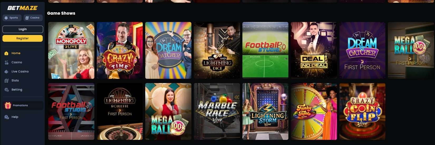 BetMaze brings the fun of TV game shows right to your casino screen. You’ll find live-action titles like Monopoly Live, Crazy Time, Dream Catcher, and Lightning Dice, all delivered with energy and charm. It’s like watching a show and playing at the same time.