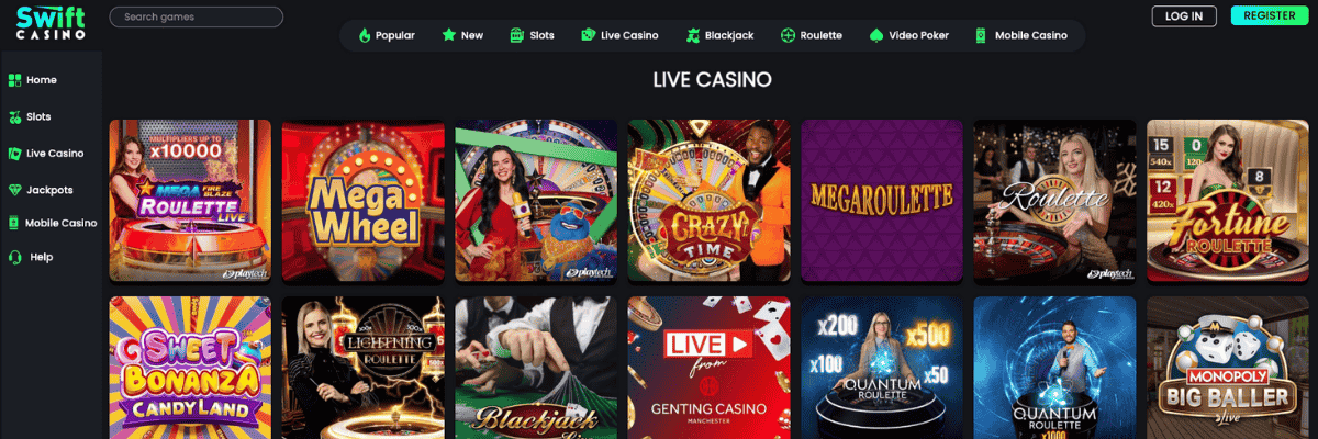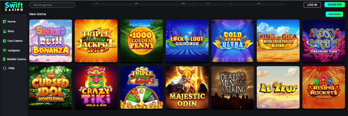 Swift Casino offers a library of over 1,500 games, covering everything from slots and jackpots to table games, video poker, and live dealer options. The library is easy to navigate and updated regularly, so whether you prefer quick spins or classic tables, there’s always something new to try.
