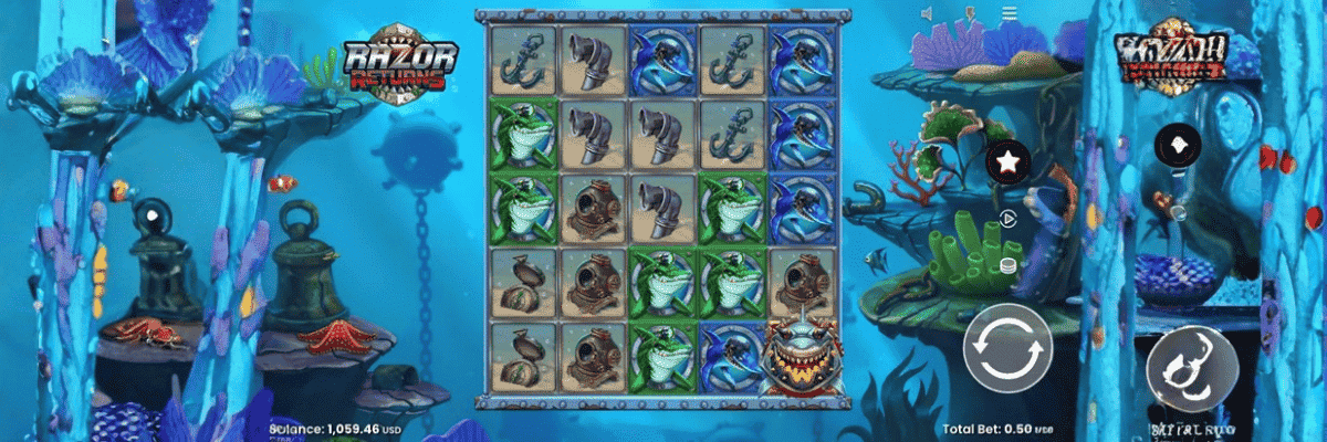 Just be aware that this is a high-volatility slot machine, so you can expect long stretches with smaller wins while waiting for a bonus. Razor Returns is ideal for players who enjoy high-risk slots with the chance for big payouts while exploring a visually appealing underwater theme.